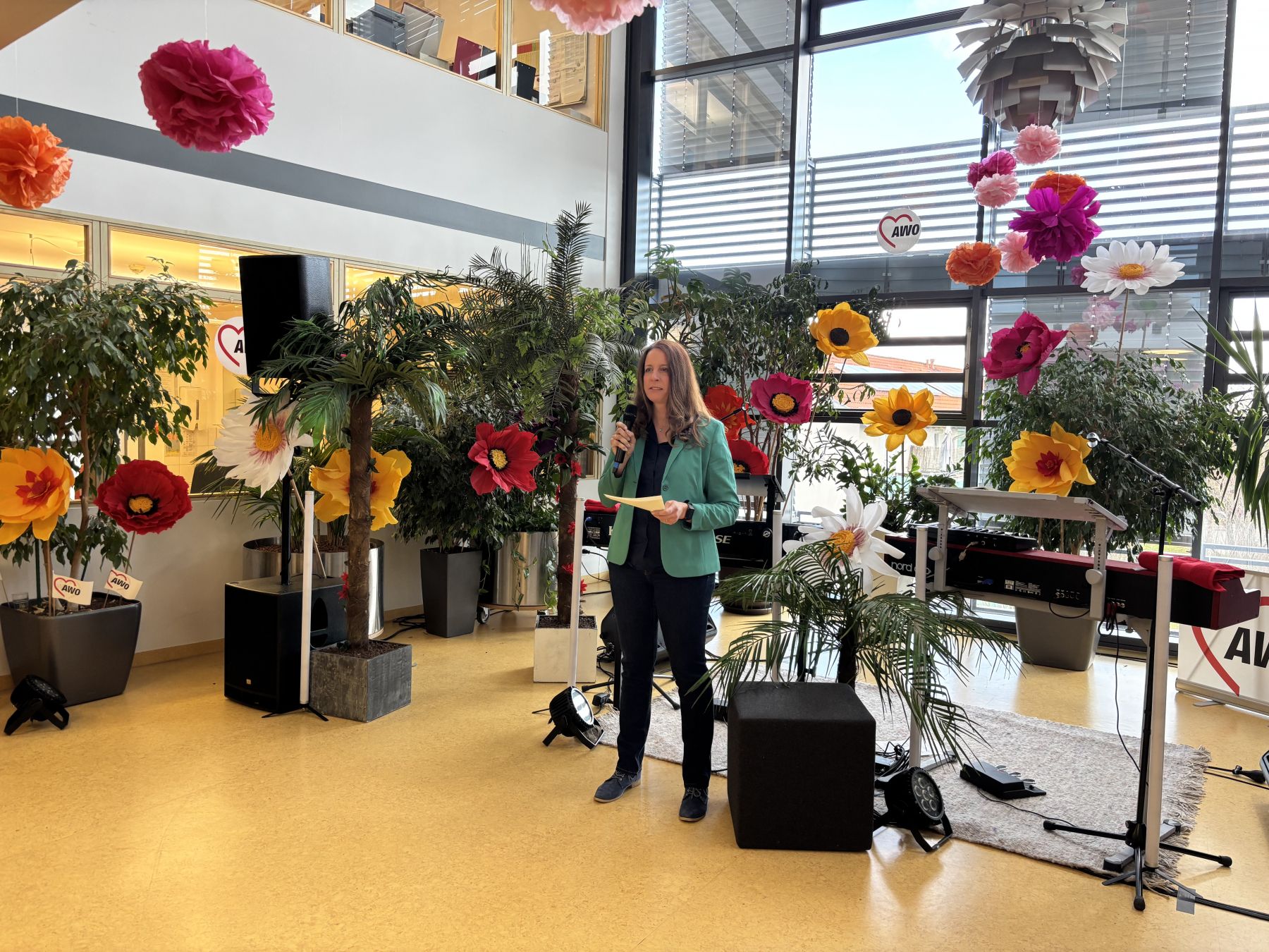 Einrichtungsleitung Susanne Gabski begrüßte das Publikum, bedankte sich für die Bereitschaft der Jungen Oper ins Haus zu kommen und beim gesamten Team der AWO für die Bereitschaft, mit anzupacken.