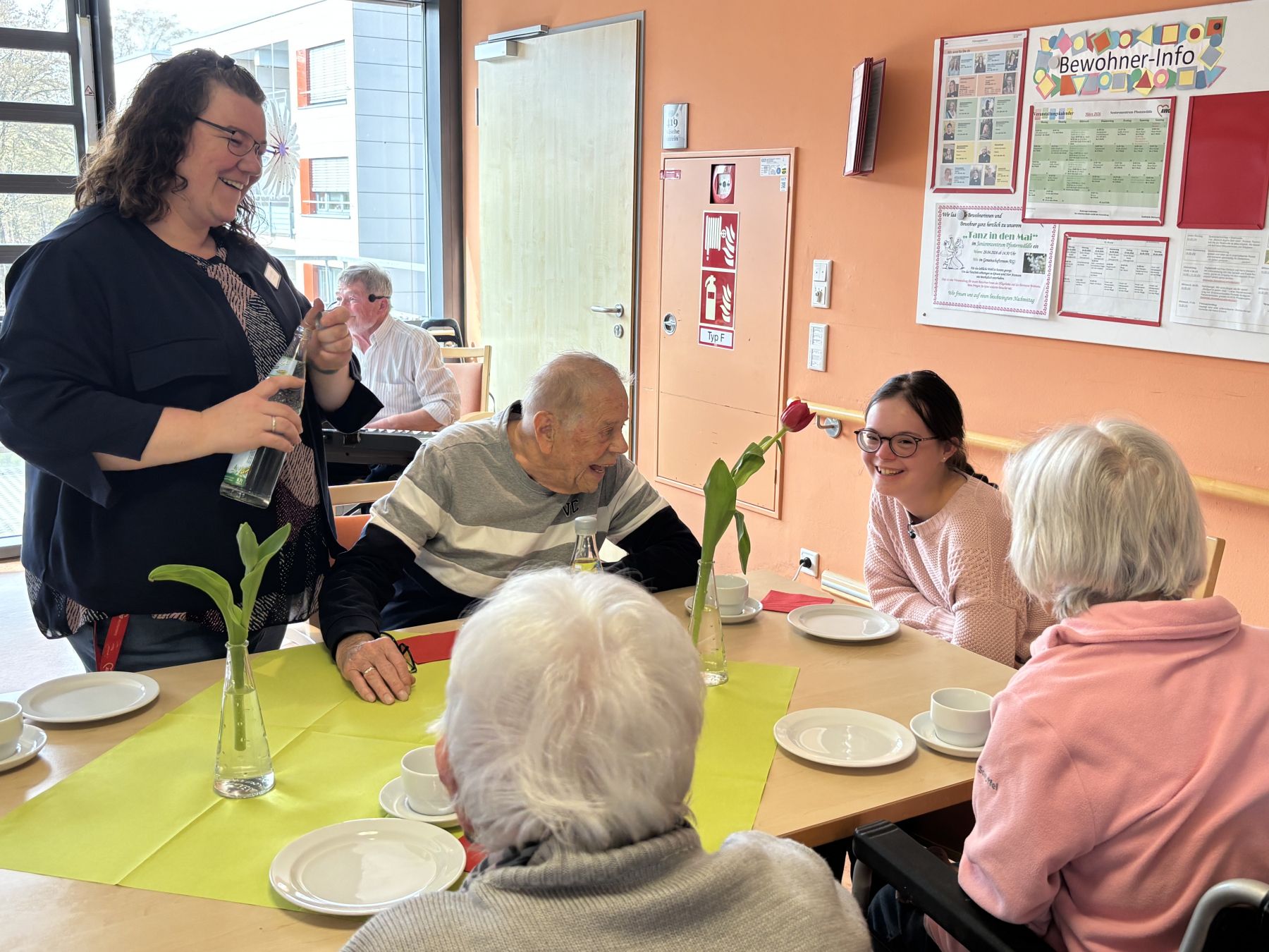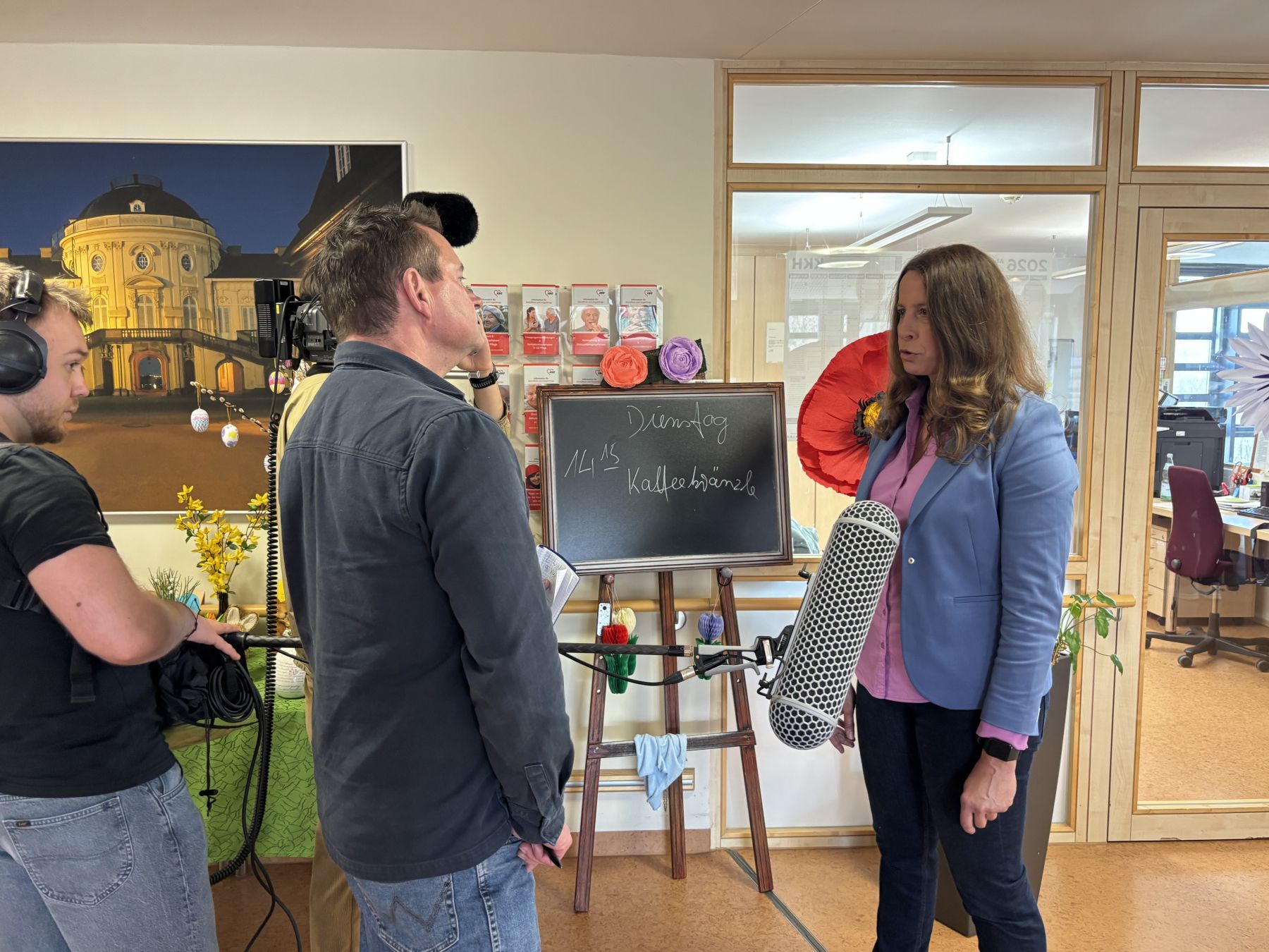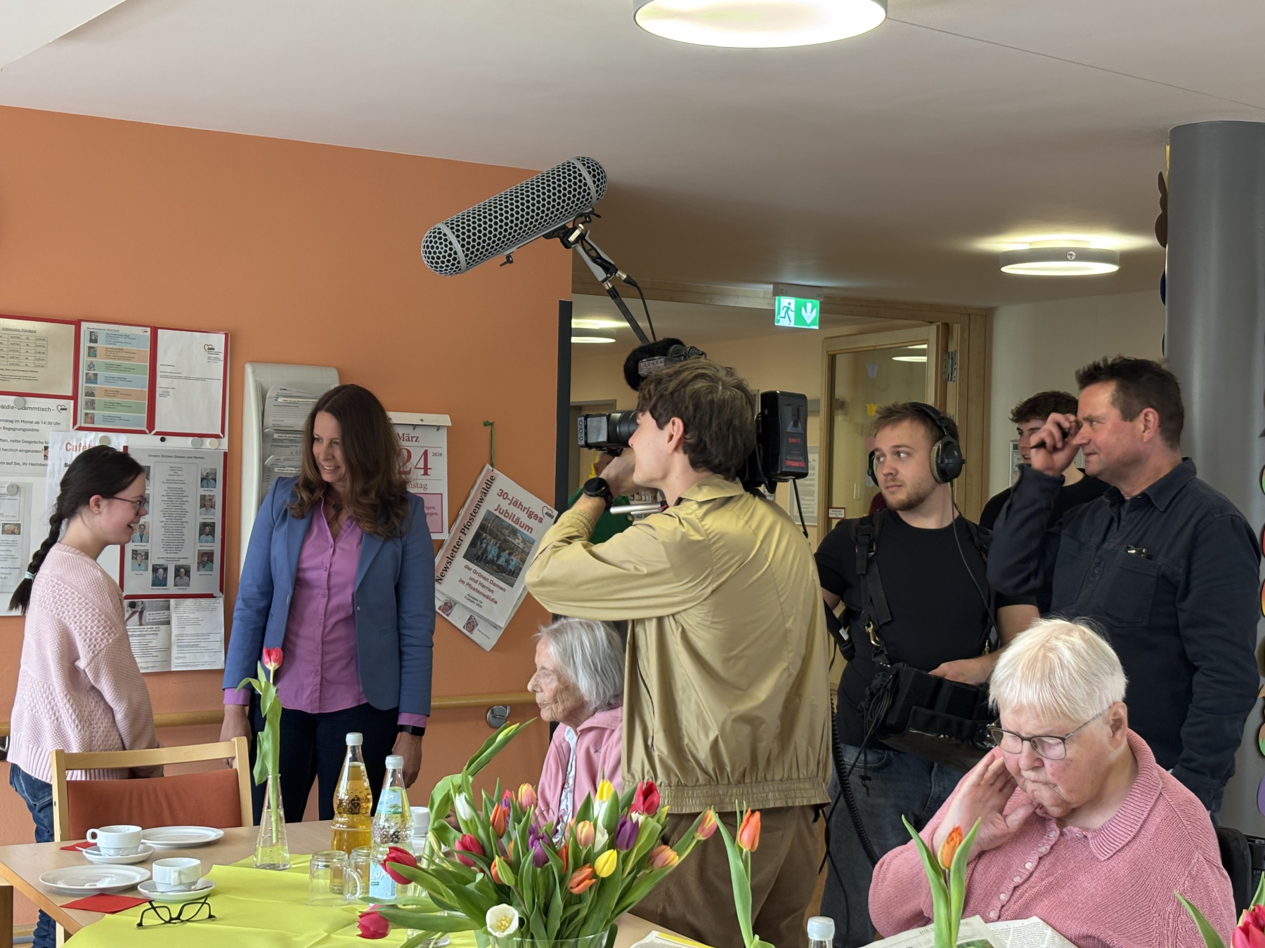 Unsere Bildergalerie gibt Einblick in den Drehtermin im Seniorenzentrum, der während des regelmäßig stattfindenden Kaffeekränzles stattfand. Sehr zur Freude unserer Seniorinnen, die das Geschehen interessiert beobachteten.