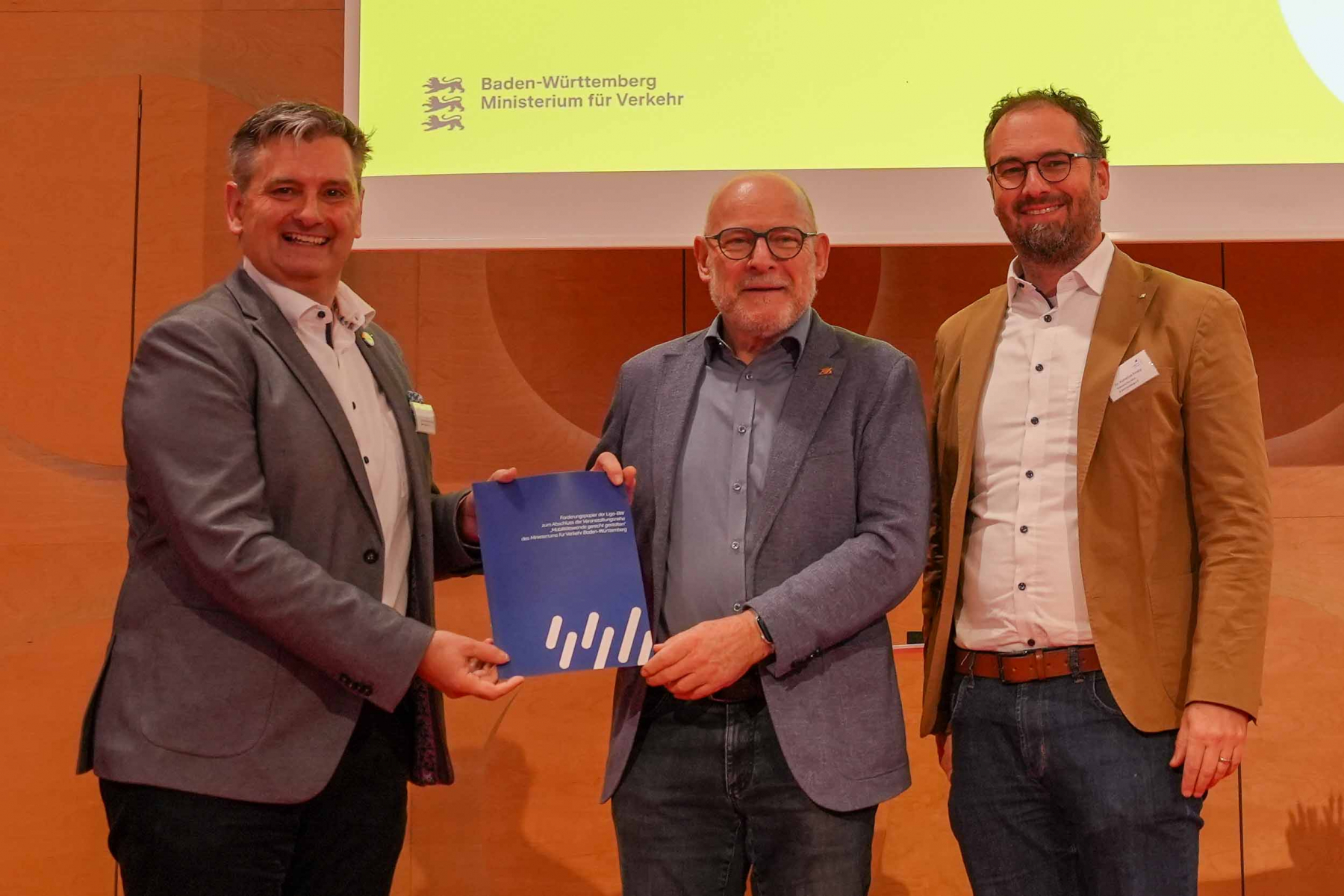 v.l.n.r.: Dr. Marco Lang, Verkehrsminister Winfried Hermann, Dr. Kornelius Knapp