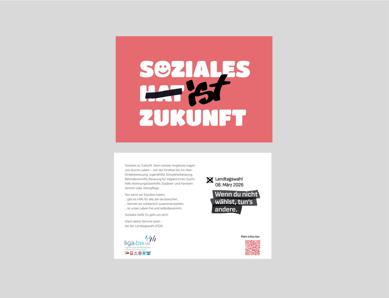 Soziales ist Zukunft! - so lautet der Slogan zur Kampagne der Liga-BW anlässlich der Landtagswahl