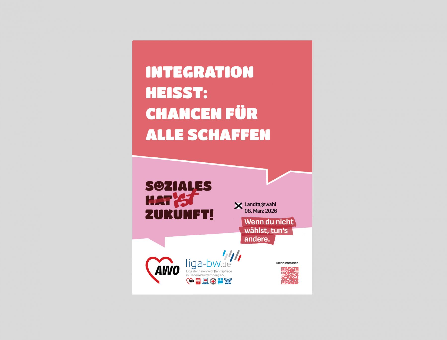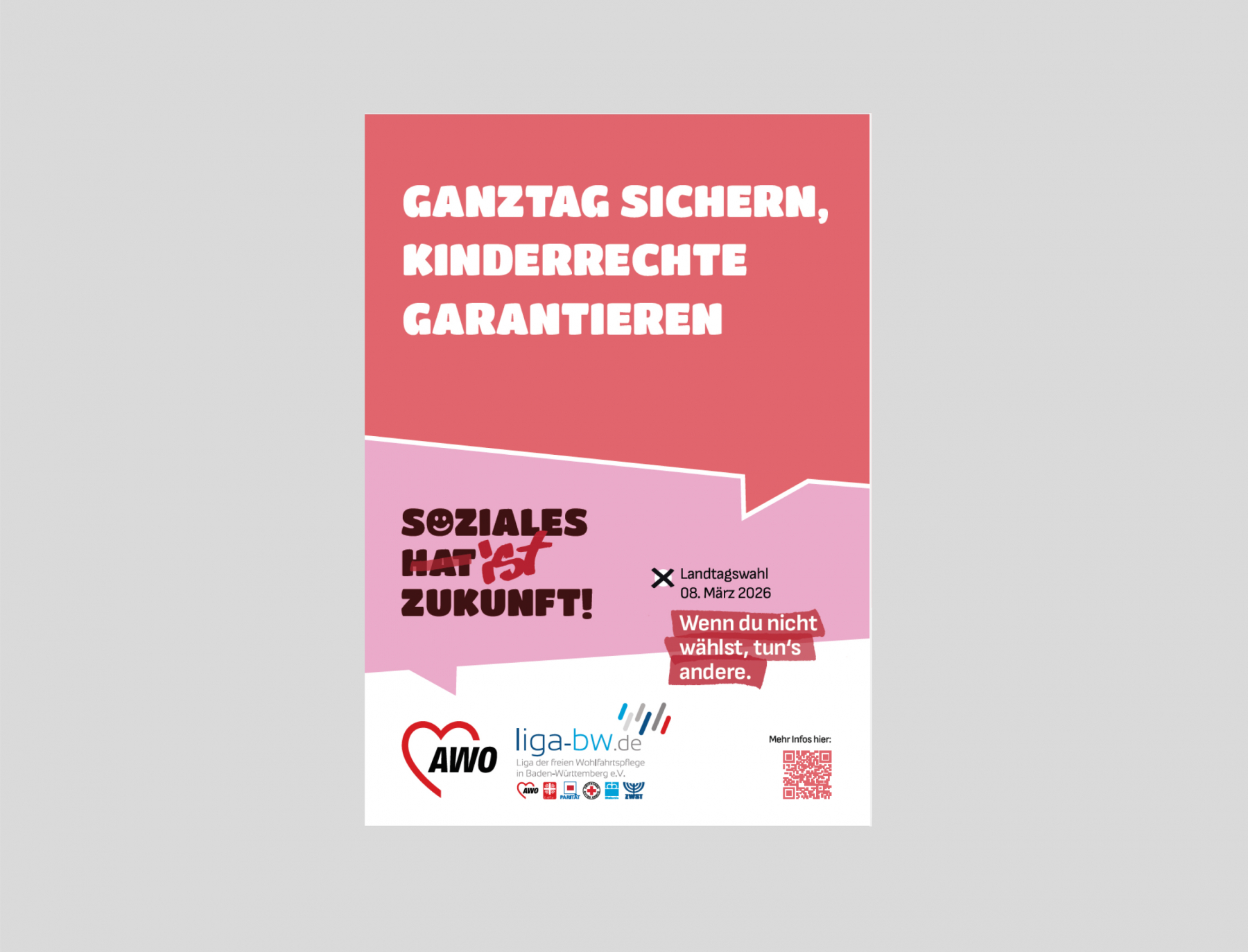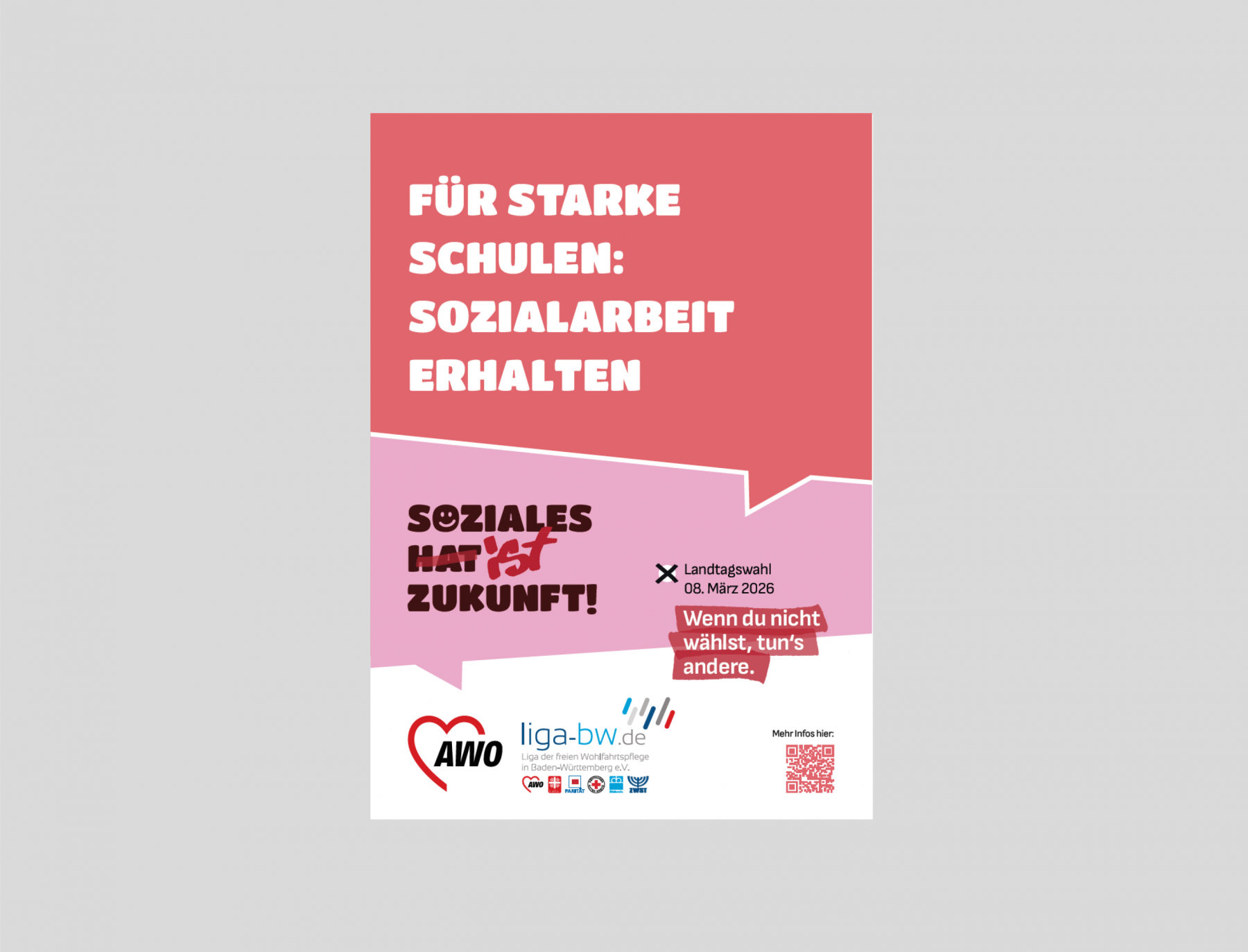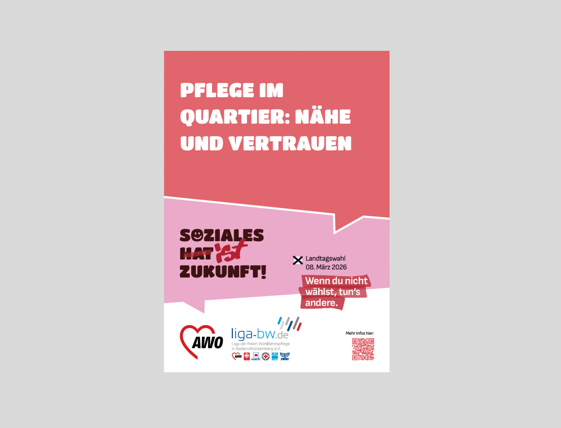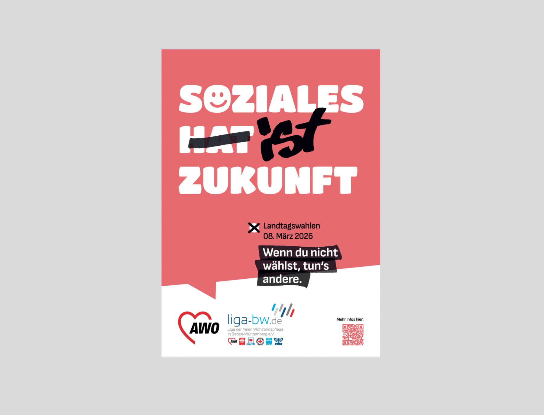 Unter dem Motto „Wenn du nicht wählst, tun’s andere“ wirbt die LIGA-BW in und mit ihren Verbänden, Einrichtungen und Angeboten der freien Wohlfahrtspflege in ganz Baden-Württemberg dafür, wählen zu gehen und auch schon vorab über Soziales und über die Zukunft zu sprechen: