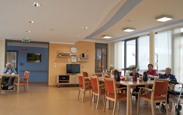 In jedem unserer beiden Wohnbereiche haben wir auch einen großen, hellen Saal. Wir nutzen ihn das ganze Jahr über für die verschiedensten Gelegenheiten: Zum Essen, zum Aufhalten, um dort zu spielen, zu reden oder zu tanzen oder auch als Therapieraum. Auch die beiden gemütlichen Sitzgruppen im Wintergarten werden gerne genutzt. Zusätzlich haben wir im Erdgeschoss noch einen Multifunktionssaal.