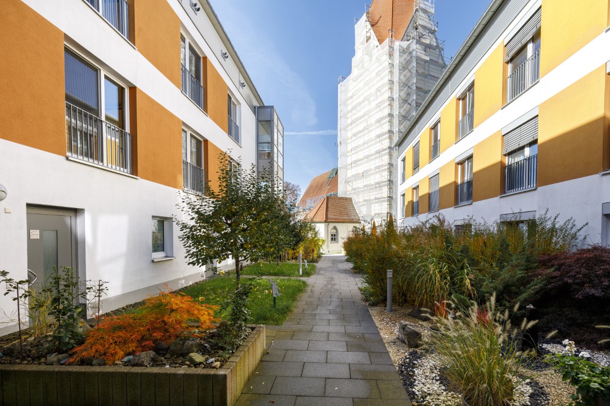 Immer wieder hören wir, dass den Menschen die Architektur gefällt. Terrassen, Wintergärten und ein Sinnesgarten im Innenhof schaffen eine behagliche und gehobene Wohnatmosphäre.